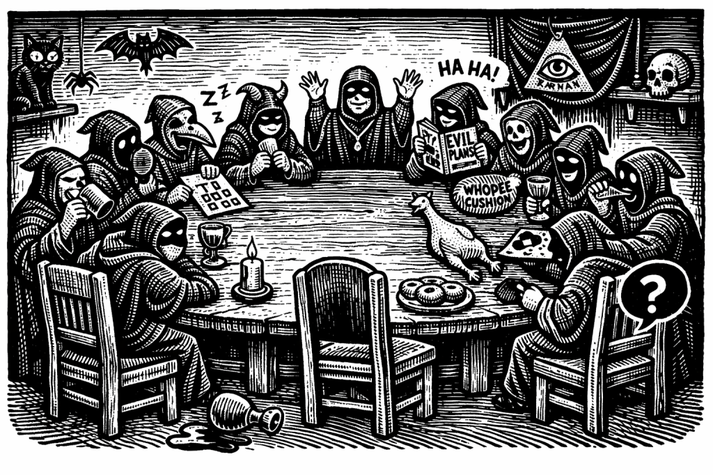 “Brethren,” he said, attempting gravitas once more, “let us not be distracted by minor logistical concerns. We are the hidden hand guiding the fate of nations. We are the unseen architects of destiny. We—”